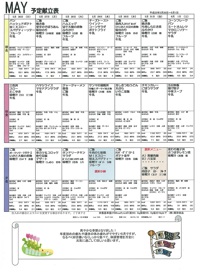 予定献立表|2013- 05/31~06/01