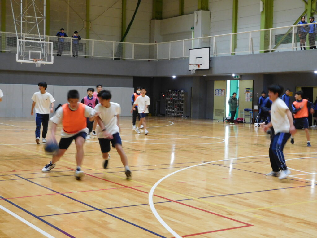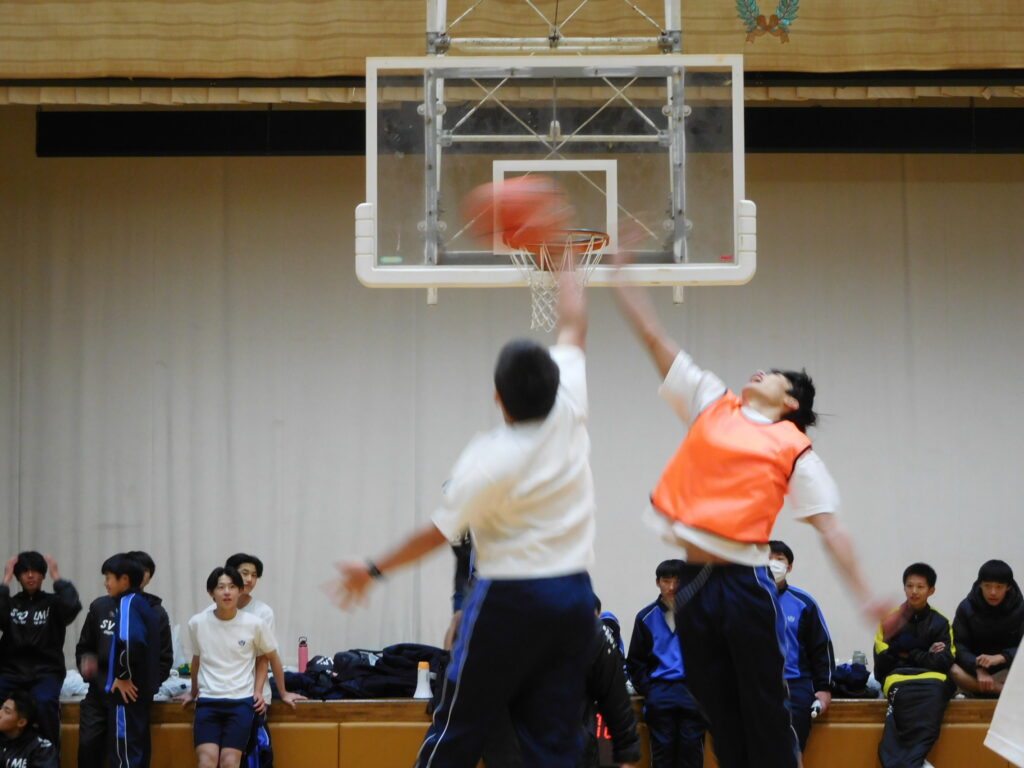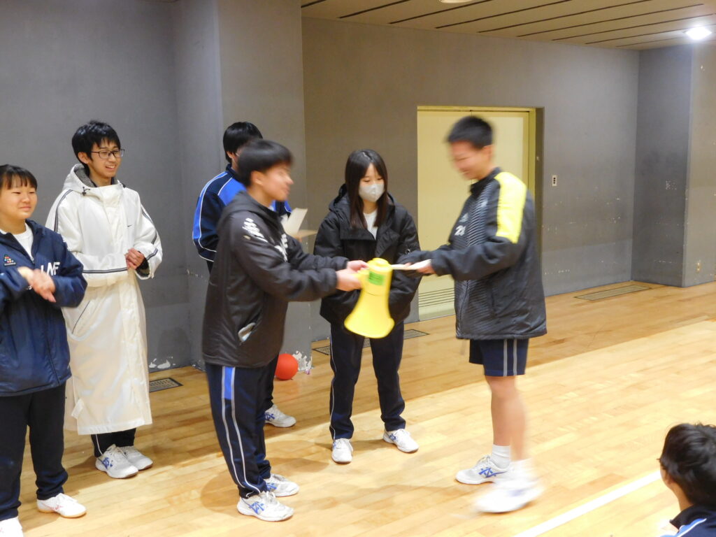 晴天の体育館で、学年・クラスの枠を超えたチームで戦いました。