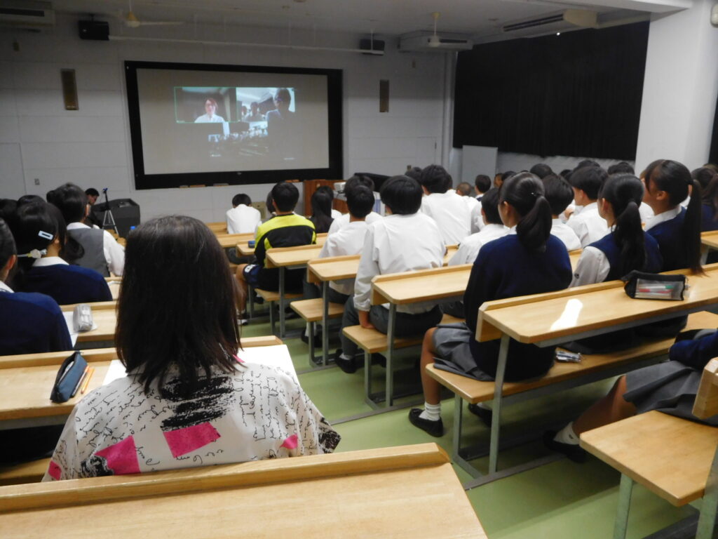 高校1年生を対象に、「かがやきスクール」の講師(医師)の方にオンラインで講演をしていただきました。